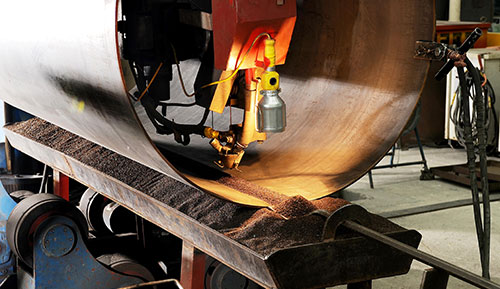 螺旋鋼管是以帶鋼卷板為原材料,經(jīng)常溫?cái)D壓成型,以自動(dòng)雙絲雙面埋弧焊工藝焊接而成的螺旋縫鋼管。螺旋鋼管將帶鋼送入焊管機(jī)組,經(jīng)多道軋輥滾壓,帶鋼逐漸卷起,形成有開(kāi)口間隙的圓形管坯,調(diào)整擠壓輥的壓下量,使焊縫間隙控制在1~3mm,并使焊口兩端齊平。