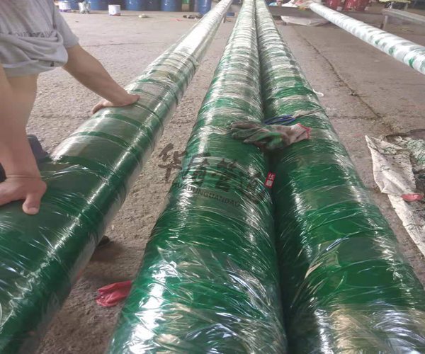 玻璃鋼纏繞防腐鋼管,玻璃鋼纏繞防腐,它能保護管材在運輸、安裝及使用過程中不受外界因素引起的破壞。玻璃鋼 抗壓強度 Mpa 120-220 抗拉強度 Mpa 210-355 抗沖擊強度 1.0公斤鋼球1米高度自由落下。保護層無斷裂、裂紋和下限變軟。 表層硬度(HB) Mpa >320 表層